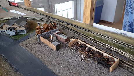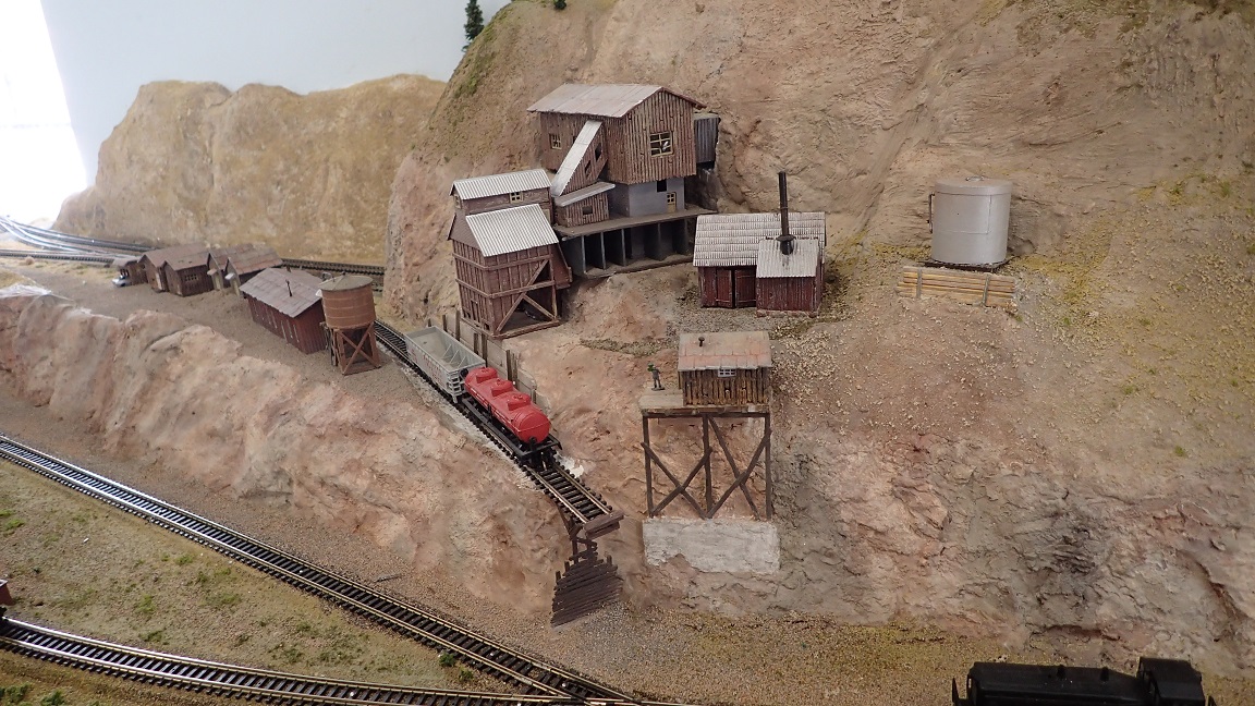 Interleaved with the mainline track is a 3' narrow-gauge railroad in a scale known as HOn3. This track connects the mining and logging displays on our layout, including a log pond and old-time lumber yard.