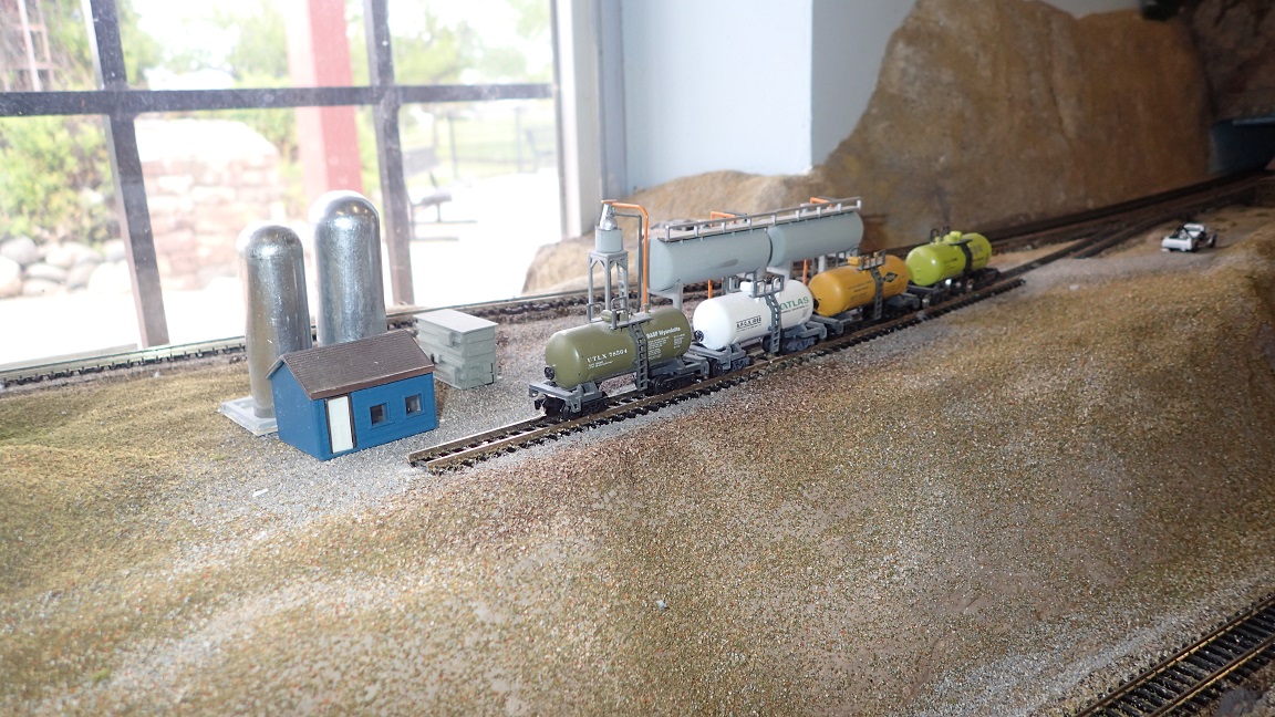 On the opposite side of the depot is an N-scale layout, approximately 20' long by 3' deep. This is our newest layout, and while it is very much under construction, you'll see its tiny trains running every operating day.
