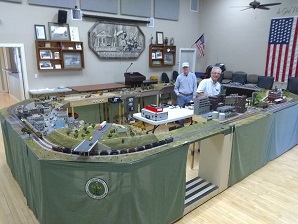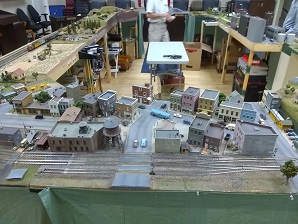 Over the years, members of the Carson City Railroad Association have built many HO-scale layout modules that are assembled into a "pop-up" model railroad for train shows, museums, and special events. The modules are 48" x 30" and are built to a common standard, so that they can be assembled in many different ways to fit various spaces and needs. We've run layouts as small as 8' x 16' and as large as 16' x 32'. The assembled layout has two mainline tracks and numerous sidings, and can be operated in DC or DCC modes, allowing us to run as many as 6 trains at once. Volunteer members from CCRA bring their own trains to run, and often provide entertaining and informative commentary on the history of railroading in Nevada and Eastern California.